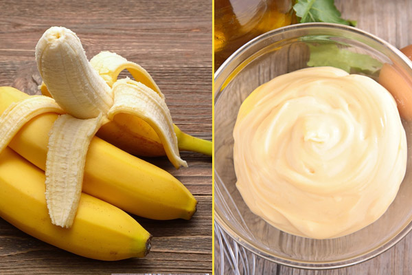 Though we all know the softening effect of bananas, mayonnaise is new in the hair care department. It gives the softness and strength of eggs and is natural and safe too. It is also said to have proteins, oil and other nutrients. No wonder, mixing banana and mayonnaise come as an easy solution for damaged hair.