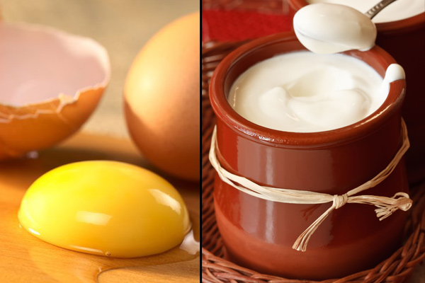 Mix 3-4 spoons of yogurt with 1 beaten egg yolk. Add some lemon juice and honey if you want that extra lustre and shine. Mix well and apply the concoction on clean and damp hair. Wait for at least 40 minutes and wash off the serum with a gentle shampoo. This homemade pack will combat hair frizziness and hair fall, if used regularly.