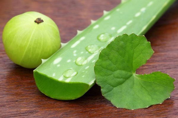 Aloe vera gel and amla help in tackling damaged hair and promotes growth. When used together, they also provide shine. Also, aloe vera naturally thickens and soothes the scalp and serves as a silkening base.