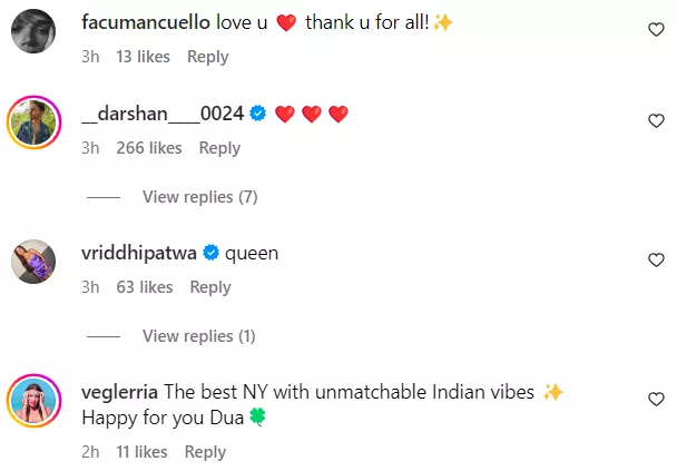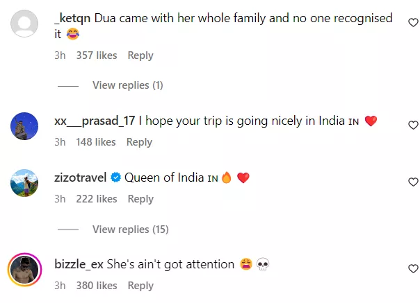 As Dua Lipa concluded her visit to India and dropped some glimpses from her trip on her Instagram, netizens quickly started dropping their witty comments. One user wrote, “Caption could have just been ‘acha chalta hu, dua hu main yaad rakhna.’” Another one said, “You are so cute in Rajasthani traditional.” A third comment said, “She's representing our india to the world, let's pray for her success.” Check out some other comments on her post: