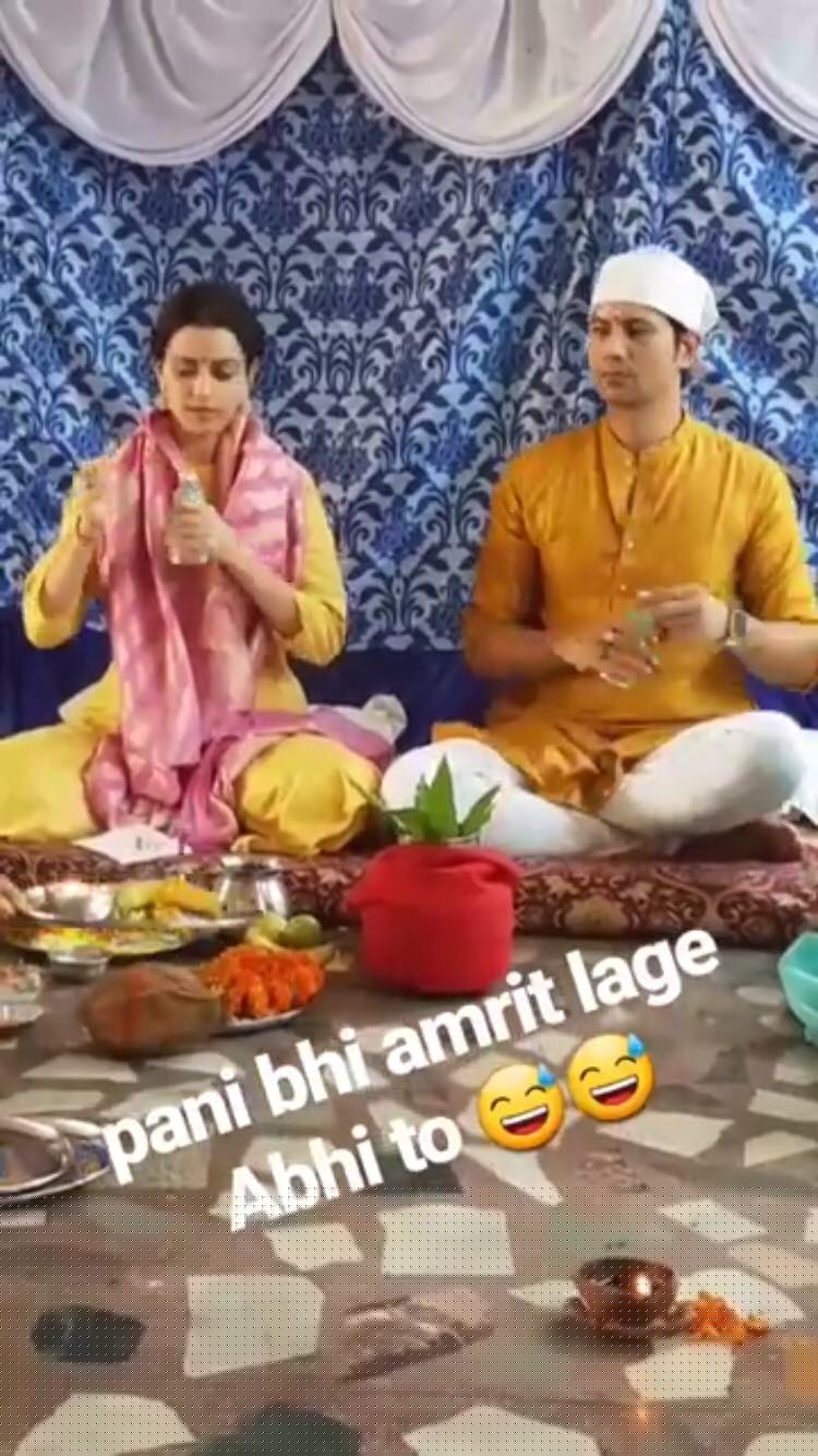 Finally, the pre-wedding celebrations have started for the newest lovebirds on the block, Sumeet Vyas and his fiancée, Ekta Kaul. Ekta and Sumeet’s friend and Balika Vadhu fame actress, Malini Kapoor shared the glimpse of the first ritual of the soon-to-be-married couple, through her Insta story. She posted Ekta and Sumeet’s pictures in which they are all prepped up for the puja, dressed in yellow attires. Take a look: