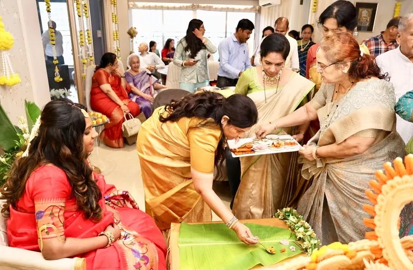 Subtle makeup and hair half-tied at the back completed her look. In photos, Esha was seen flaunting her fully grown baby bump. It was a two-day celebration; the first day was a Manglorean Bayake. It was a beautiful ritual, and her entire house was decked up in yellow marigold flowers.