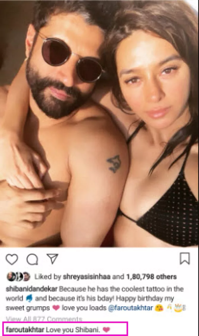 Farhan turned 45 on January 10, 2019, and his muse, Shibani took to Instagram and posted a heartfelt wish for her love, which she backed with another picture from their vacay. The same could be read as, “Because he has the coolest tattoo in the world and because it’s his bday! Happy birthday my sweet grumps. Love you loads @faroutakhtar.” And then finally came Farhan’s reply on the picture which proved as a confirmation for his love towards Shibani. The same could be read as, "Love you Shibani" which was backed by a red-heart emoji. Checkout a screenshot of Farhan's reply here: