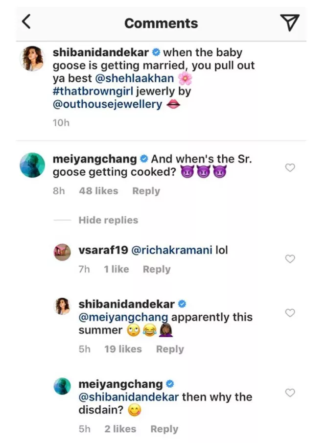 Isn’t it amazing? Looks like things are pacing steadily for Farhan and Shibani and there are high chances that the couple might tie the knot this year’s summer! Sounds exciting, right? A source close to the couple had shared with DNA sometime back, “They are extremely serious about each other and Farhan’s kids have also warmed up to Shibani, so this looks like the most obvious step for the two." Also, Shibani’s Instagram conversation with singer-actor, Meiyang Chang gave us a major hint about a speculated hitch this summer! Take a look at their conversation here: