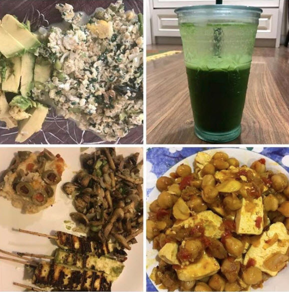 Her everyday diet is broken into 6-8 mini meals. She starts her day with a glass of warm water, lemon and some grated ginger.