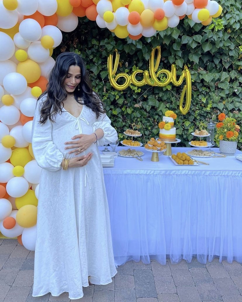 “Reminiscing about this sweet baby shower! Thank you to my awesome tribe of sisters who made this such a special day for me. Thank you @mssonumb and @preetidesai for leading the charge and @lavieenfilters, @artemisporay and @thekace for bringing in the finishing touches so beautifully. I feel so blessed and lucky!”
