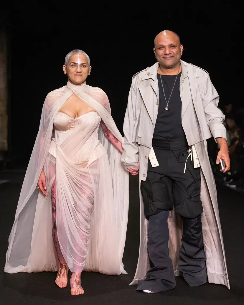 Fast forward to 2025, and Gaurav Gupta made his much-awaited comeback in style after the tragic fire accident. It's fair to say that the ace couturier didn't disappoint anyone but exceeded expectations. Gaurav introduced the 'Across the Fire' couture collection at the Paris Fashion Week 2025, leaving everyone stunned. Gaurav's wife, Navkirat Sodhi, served as the muse for his collection and walked on the ramp in a cream-hued draped corset gown. The gown featured scars on the legs and arms, symbolizing strength and vulnerability.