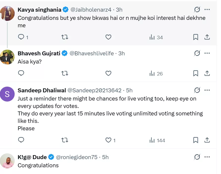 Netizens in the comment section also wished Gaurav Khanna congratulations. One user wrote, "Just a reminder there might be chances for live voting too, keep eye on every updates for votes. They do every year, lasting 15 minutes, live voting, unlimited voting, something like this." Others penned congratulatory messages and told Gaurav Khanna that he did a great job. Salman Khan, being the OG host of Bigg Boss 19, had schooled all the contestants, and only Gaurav Khanna, Farrhana Bhatt, Tanya Mittal, Amaal Mallik, and Pranit More made it to the top 5.