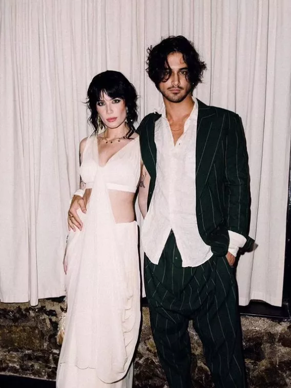 The top also comprised net cape-like extensions and embellished tassels. Halsey paired the top with relaxed-fit trousers in metallic beige, which featured edgy cutout patterns at the front. She even opted for jewellery from the collection of another Indian brand, Amrapali’s Tribe. She accessorised her look with a pair of dangling earrings, a delicate crystal-encrusted haath phool, a bracelet, and a pair of shimmery block heels.