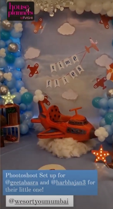 On June 13, 2022, Geeta took to her Instagram handle and posted a couple of IG stories from her son, Jovan's first birthday shoot. In the video, we can see a cute backdrop with aeroplanes and clouds, on which it was written, "Time flies." We also saw a cute aeroplane and blue-coloured balloon decoration. Atop it, Geeta wrote:
