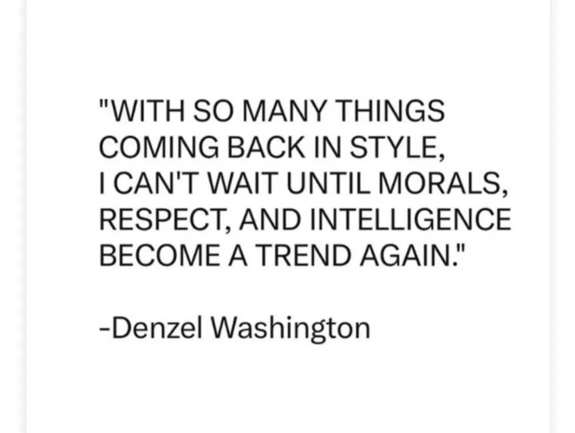 “With so many things coming back in style, I can’t wait until moral, respect, and intelligence become a trend again.”