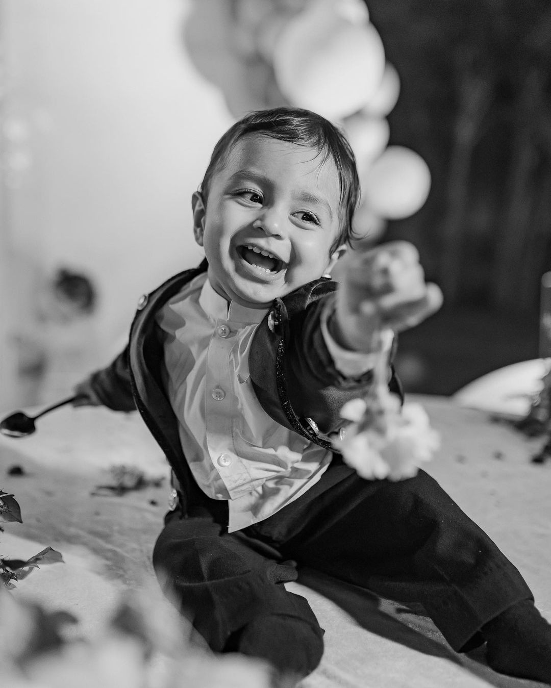 Just when we thought we had seen everything, Harshdeep Kaur dropped another set of pictures on her IG handle a few moments back, and this was more about some candid shots from the birthday party. From Hunar Singh's monochrome picture, Mankeet Singh lifting his little toddler in the air to the entire family dancing, and the perfect family photo, Hunar's first birthday was indeed a memorable one. On the special occasion, Harshdeep and Mankeet looked stunning in their respective outfits. While the mother looked gorgeous in a pastel pink gown, the daddy looked dapper in a dark maroon bandhgala and black trousers. Along with these pictures, Harshdeep wrote a caption that can be read as: