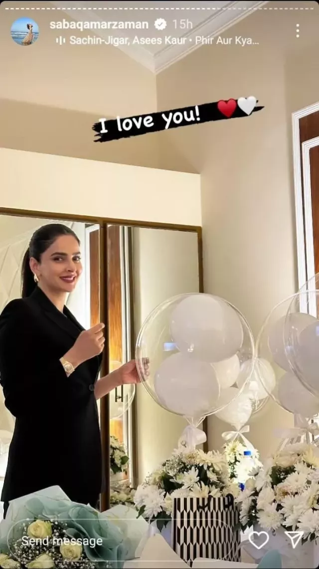 On her 41st birthday, Saba shared a love-filled picture on her IG stories. The snapshot featured various white flowers and balloons, beautifully clubbed together. Saba celebrated her birthday in her home, and her friends and family decorated the place with white flowers and baloons to highlight her homes' natural white backdrop. Sharing a cutesy photo on IG, Saba penned a gratitude note, seemingly for her special someone. She mentioned that the person's love completes her and that she is forever grateful to have that person in her life. In her words: