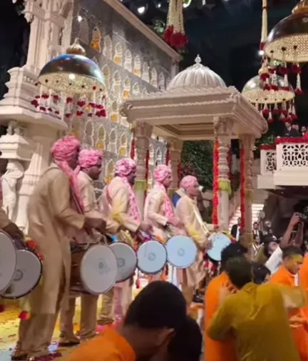 And now, we got our hands on the inside glimpses of the ceremony from one of the fan pages of the Ambani clan. In the pictures, many celebs were seen enjoying and dancing to the beats of dhol while drenched in haldi. The entire space was decorated with flowers.