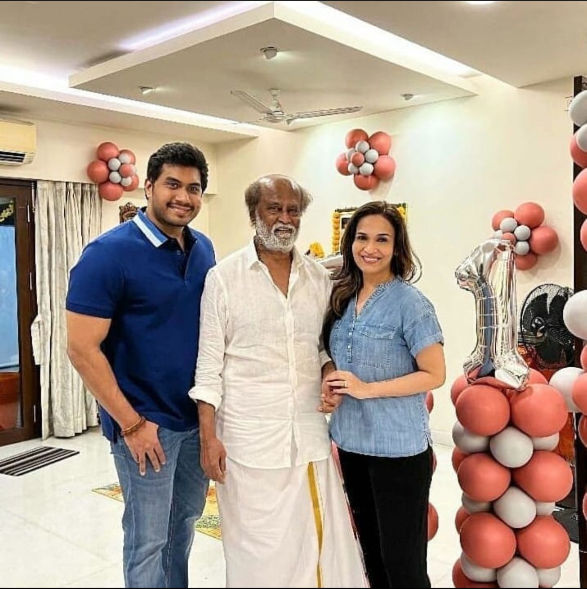 Rajinikanth celebrated his 71st birthday with some birthday cakes and had enjoyed some fun-filled moments with his family members. Now, pictures from the same are doing rounds on the internet and their friends are going crazy over it. In the pictures, we can see Rajinikanth's wife, Latha Rajinikanth, their daughter, Soundarya, son-in-law, Visakan, and grandsons, Yatra Dhanush and Ved Krishna.