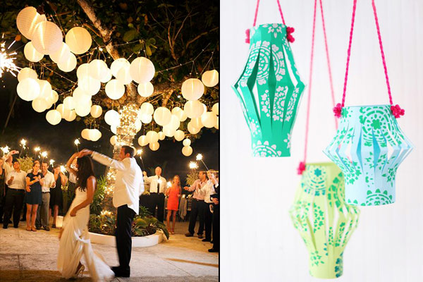 Be it real or out of paper or fabric; lanterns are always the best decor ornaments. But paper lanterns are something that can light up your event creating a warm heavenly atmosphere. These faux vivid colour lanterns are suitable for both a formal and a casual setting and are super crafty to inject some ethnicity into your wedding. These are also amazing alternatives to real candles or diyas. If you have a poolside party, you can have floating paper lanterns illuminated with candles inside.