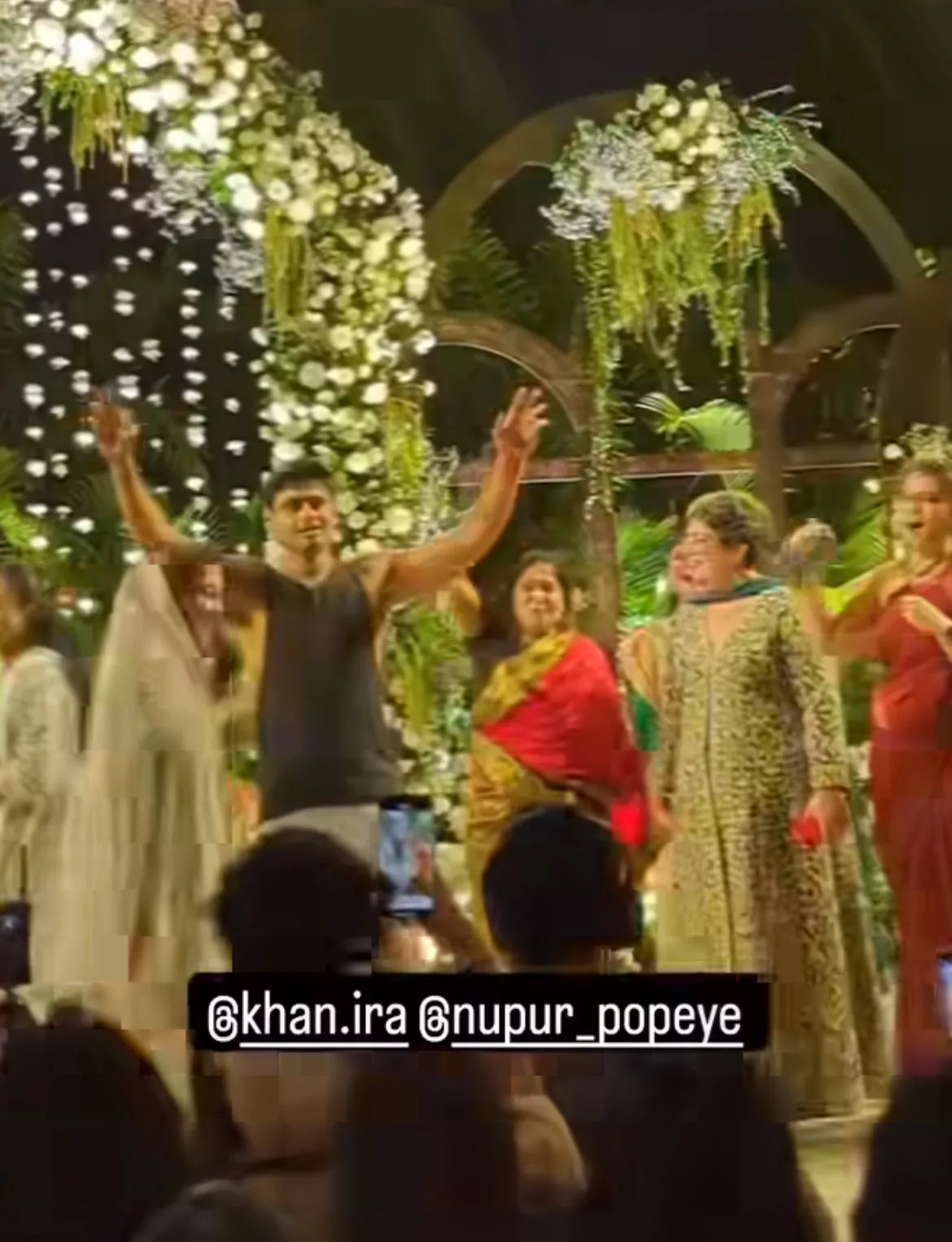 Earlier, we stumbled upon several glimpses of the groom, Nupur's dhamakedaar baarat, wherein he was dressed in a black sleeveless t-shirt teamed with white shorts and a pair of sky-blue sneakers. The groom jogged from Santa Cruz to Bandra, marking a total distance of 8 km, to reach his wedding venue. Not just this, in some other glimpses, Nupur was seen playing dhol and making a grand entry at his wedding venue. Ira Khan's groom also danced outside the venue and left everyone's jaws dropped.