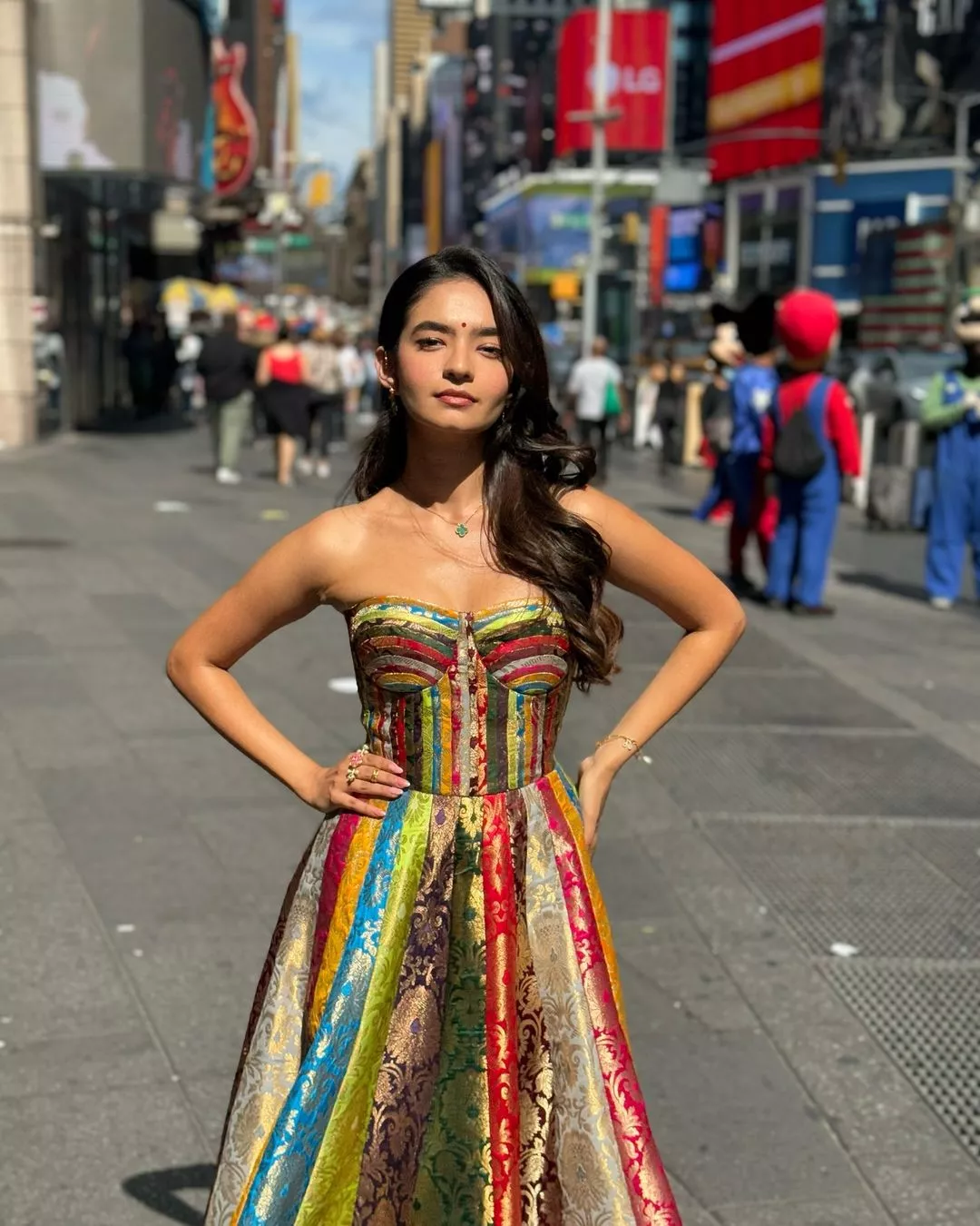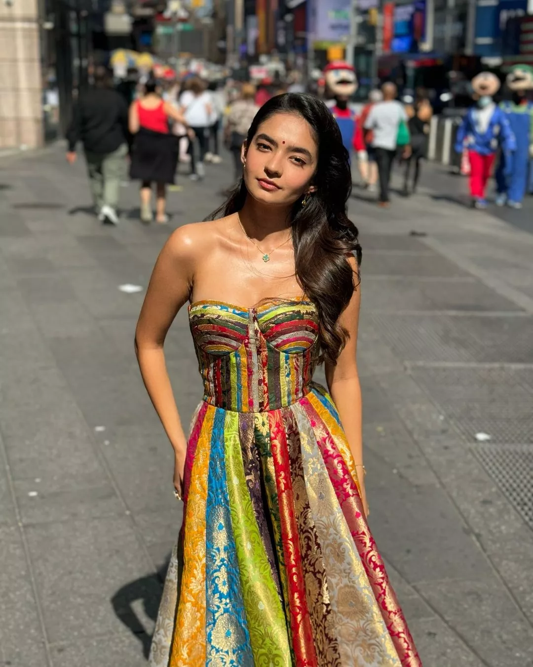 Anushka Sen recently made everyone proud as she debuted as a singer in the West, and became the first Indian artist to perform live on stage at Times Square, New York City. The actress collaborated with the UN Global Leader for their project regarding sustainability. For the day, Anushka slipped into a dress that showcased the amalgamation of Indianness, with a touch of modernity into it.