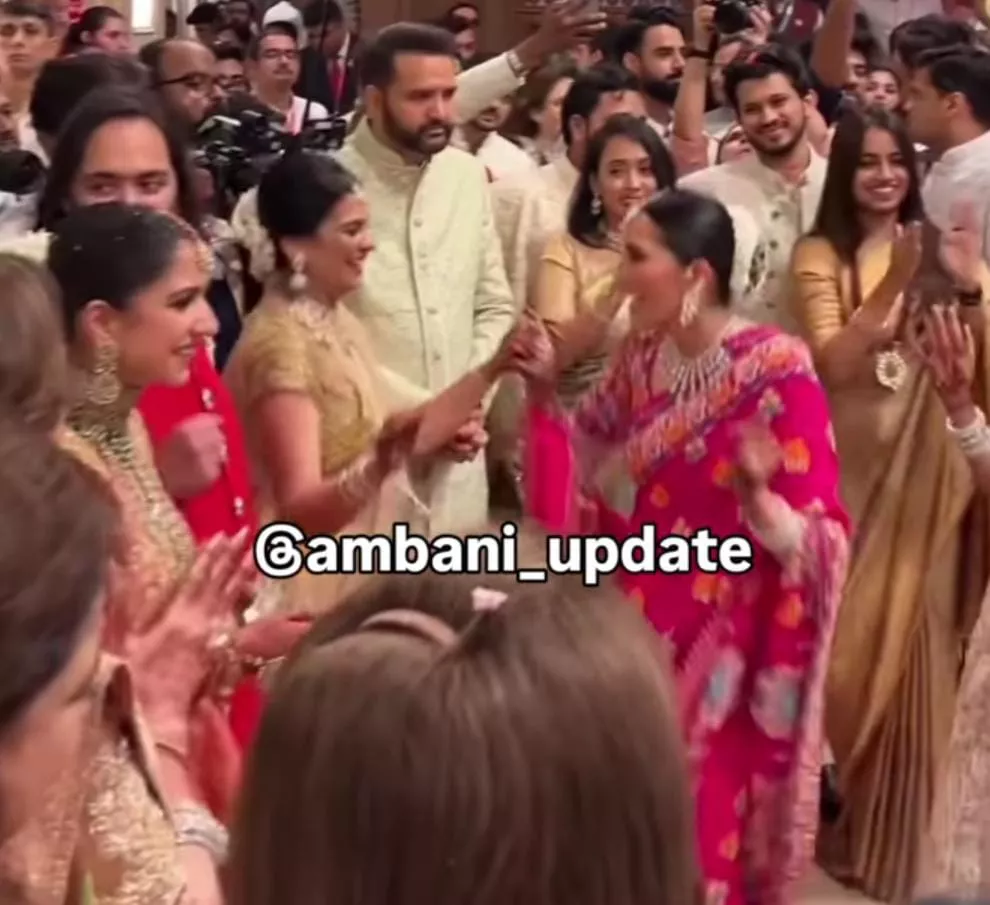 In the video, we can also see Isha Ambani and Shloka Mehta dancing their hearts out, as Radhika was seen doing her vidaai rasam. Isha and Shloka were joined by Mukesh Ambani's niece, Nayantara Kothari. Moreover, Isha and Shloka looked super happy as they were all set to welcome the choti bahu into their household.