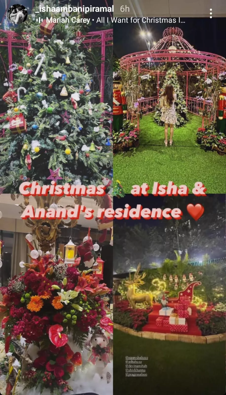 Often, we get hold of stunning glimpses from certain bashes hosted by Isha. On Christmas 2023, Isha and her businessman husband, Anand Piramal hosted a grand Christmas bash at their home. In a few pictures shared by one of the Ambani fan pages, we got stunning sneak peeks into the lavish decoration over there at that time. We spotted a giant X-mas tree decorated with various Christmas ornaments, including balls, bells, stars, gifts and others. We also spotted a grand red carpet on the staircase of Isha and Anand's home and fair-themed lighting in an open space with many other live decorations. However, no such pictures of the Ambanis from the same party have surfaced on the internet till now.