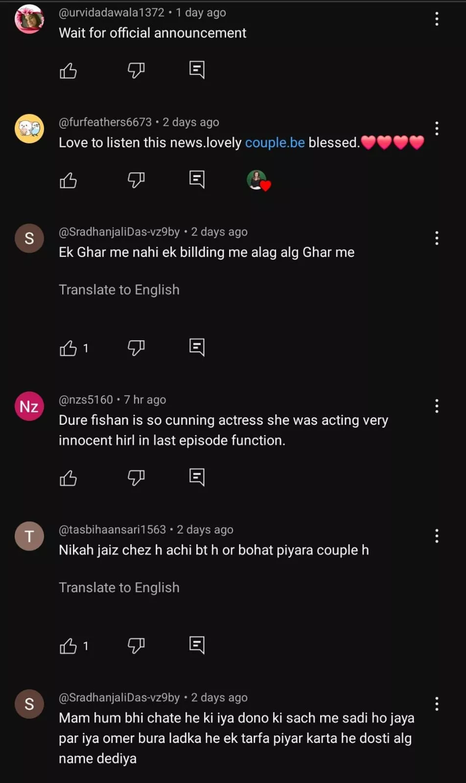 “Ishq Murshid sabne dekha, na sirf dekha par dono characters ko pasand kiya. Unke khufiya nikah ki khabrein abhi aa rahi hai aur jab tak koi baat na ho tab tak chingari jo nahi nikalti. Ye dono jo hai kaafi der se relationship mein hai aur ye sab khabre start huyi jab last episode ke premiere se aur sab dekhte hai ki Bilal aur Durefishan jo hai wo ek dusre ke haaton mein haath daal ke, baahon mein baahein daal ke aa rahe hai, teen ghante late aate hai.”
