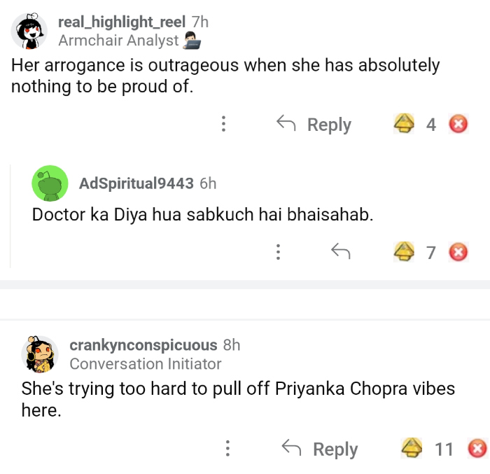 A Reddit user re-shared the video of Janhvi on the discussion platform. Soon after, the video went viral on the Reddit, and netizens started flooding the comment section with their witty reactions. While one of the social media users commented, "She looks so pretentious and off-putting. Why is she behaving like that with the support staff too? Obnoxious," another one wrote, "She's trying too hard to pull off Priyanka Chopra vibes here." One more internet user reacted to the video and commented, "Seeming pretentious much?" Another comment can be read as "She's really trying hard to be sex symbol."