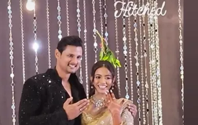Harshala and Jay were seen flaunting their engagement rings. Jay wore a black-hued kurta pyjama, while Harshala looked resplendent in a shimmering golden lehenga. According to the Stories posted by Jay and Harshala, the couple had a grand entry on the stage before their engagement ceremony. The lights of the banquet hall were turned off as Jay and Harshala's friends switched on their flashlights and welcomed the couple on the stage.