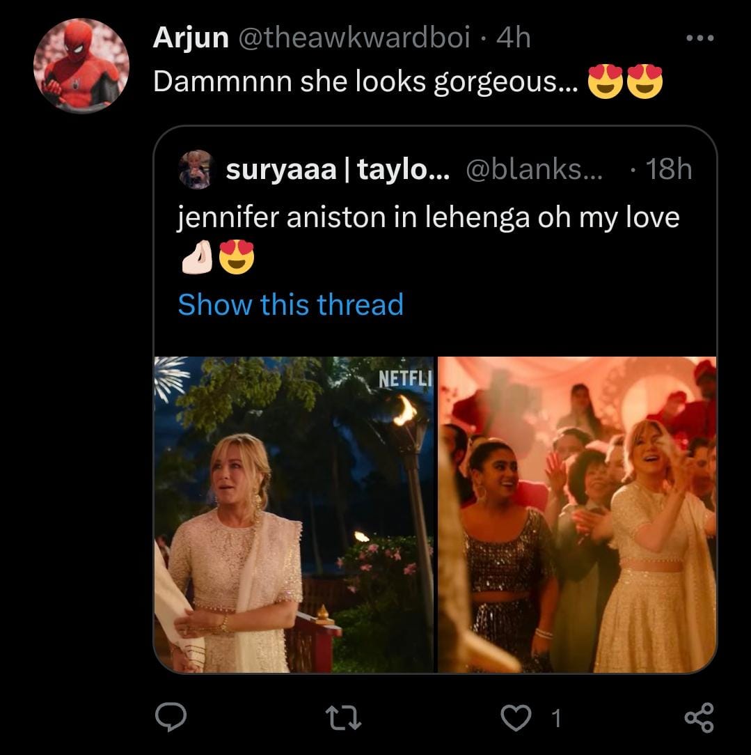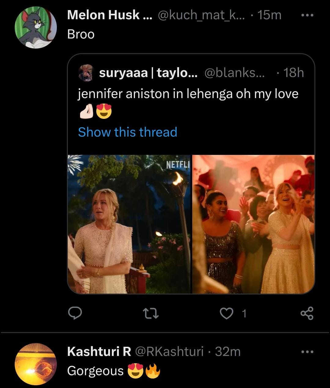 As soon as the post was shared, Jennifer Aniston's fans started pouring their hearts out in the post's comment section. While some were amazed to see her in the ethnic look, some expressed their excitement to see her in the movie. While one user wrote, "I've seen the thing which my heart desired the most." Another penned, "She hasn't aged well bu." Check out the comments: