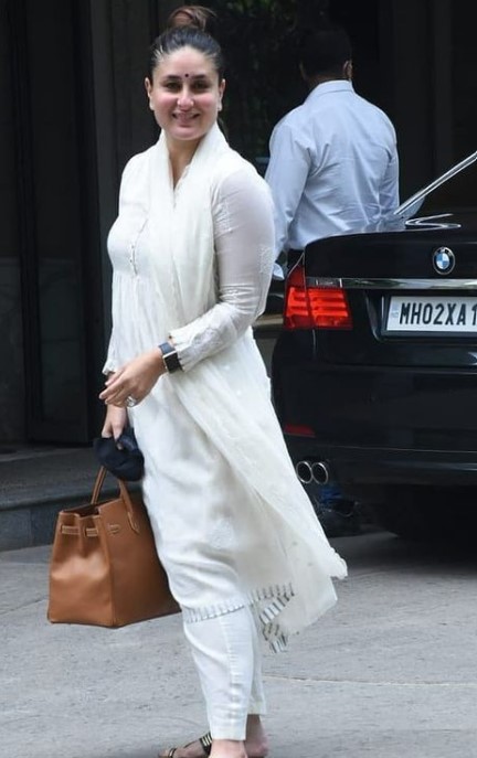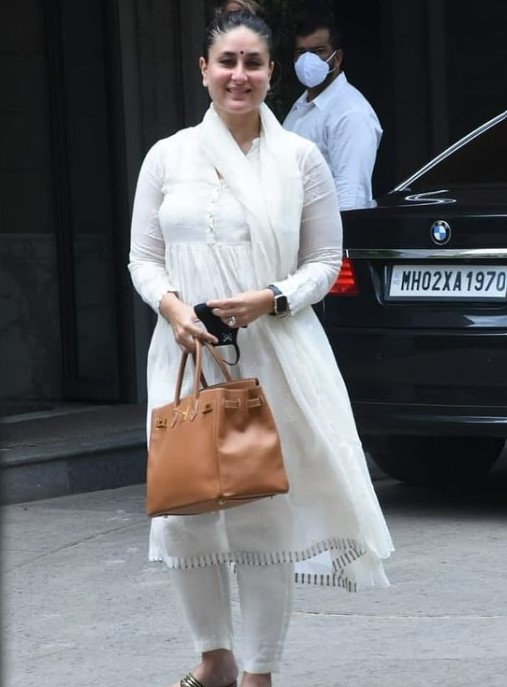 On July 2, 2021, Kareena Kapoor Khan was spotted outside her daddy, Randhir Kapoor's residence for a family puja. Kareena had donned a pretty white anarkali suit. She had kept her look minimalistic with hair tied in a bun, a black bindi and subtle makeup. However, it was her tan Hermès Birkin bag, which had taken our hearts away, and its price will definitely leave your jaws dropped.
