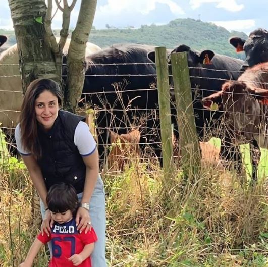 On April 10, 2020, a picture featuring Kareena Kapoor Khan and her little bundle of happiness, Taimur Ali Khan made it's way on to the internet. In the picture, we can see little Tim wearing a red polo T-shirt, whereas mommy, Kareena is looking beautiful in her white T-shirt topped by a half-sleeves jacket and denim. Other than the cute duo of mother-son, we can also see some mountains, blue sky, and some cows in the background. Take a look. (Don’t Miss: Sunny Leone Reveals The First Thing She Will Do When Lockdown Ends And Every Mother Can Relate To It)