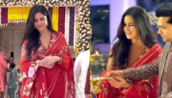 Time and again, we have talked about Katrina Kaif rocking a saree at a glamorous event before. Over the years, we have seen Katrina giving major traditional outfit goals to all the fashionheads out there. Last year at Kalyan Jewellers' Navratri event, Katrina was spotted wearing a georgette saree with red pearl drops and a shimmery border. The saree was once again from the House of Tarun Tahilani, and it's fair to say that he is Katrina's trusted designer when it comes to styling her during the Indian festive season.