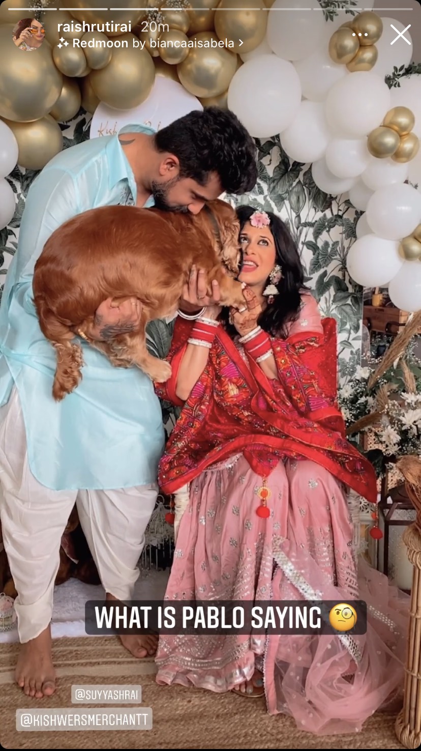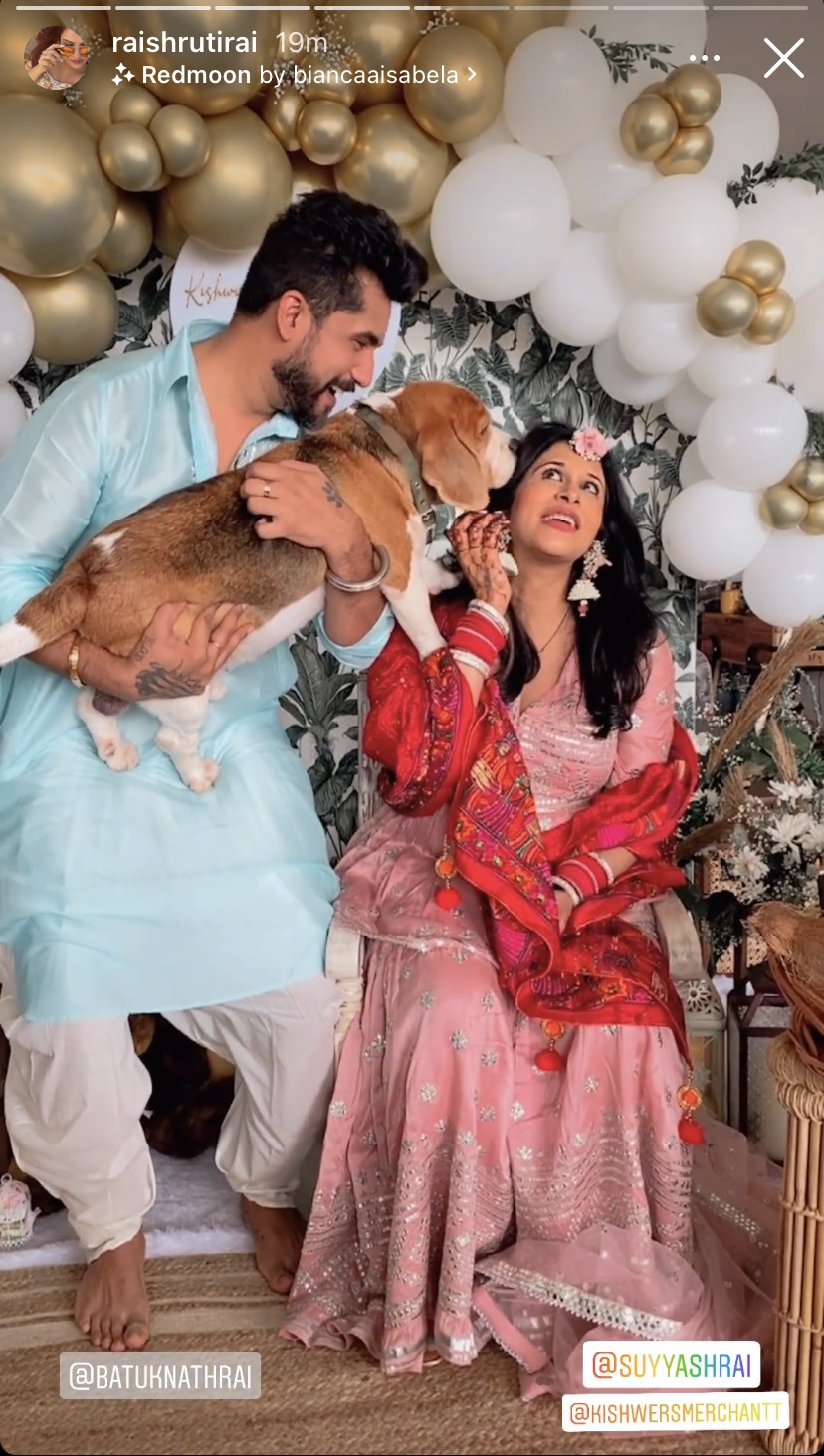 Well, Kishwer Merchantt’s godh bharai rasam has finally begun and her nanad, Shruti Rai has shared glimpses from the same. Taking to her IG handle, Shruti shared a Boomerang of Kishwer, posing for the camera while holding her baby bump. With white and golden balloons, flowers and teddy bears in the background, it all made for a perfect baby shower setup. Kishwer glowed in her pink suit with silver gotta patti work on it. Shruti also shared her picture on her IG stories and wrote, “Bua to be is ready” atop it. She also shared pictures of Kishwer with her husband, Suyyash and their furball.
