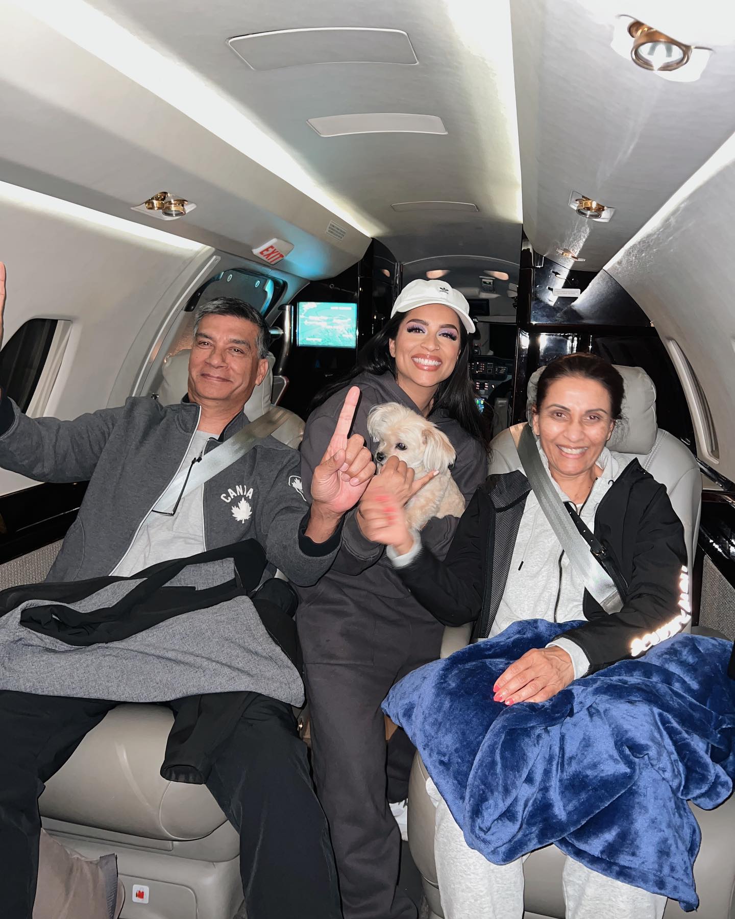 "So I reluctantly and painfully had to drop a huge sum of money to charter a plane in order to meet both of my work commitments. I was so stressed about it. I spent days avoiding the booking and trying to find another way (there wasn’t one.) But then I looked at my vision board and right in the middle is a quote that says “more family time.” I booked the plane and invited my entire family to fly back to LA with me. In my heart, the only thing that could justify this cost was giving my loved ones an experience and trip of a lifetime. So yeah, I cried tears made of dollar signs, but on the bright side, my family is here. And that’s a bigger flex than anything. Because why else do we work this hard."