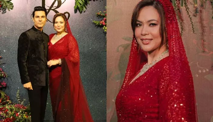 After doing a little research on Lin Laishram's reception look, we got hold of the brand name and the price of the beautiful saree she donned. For the unversed, the red-maroon sequinned saree was from the shelves of the designer duo, Rohit Gandhi and Rahul Khanna. And its whopping price tag can make your jaw drop for a while. However, Lin Laishram's red sequined saree came with a whopping price tag of Rs. 1,95,000.