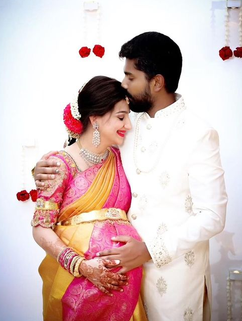 On July 21, 2021, Lovey had shared a series of throwback pictures from her godh bharai ceremony during her second pregnancy on her IG handle. Lovey had donned a yellow and pink silk saree, paired with a heavily sequinned pink blouse for the ceremony. She had accentuated her look with a diamond necklace, earrings and maang teeka. She had also donned a gold kamar bandh and bajubandh. Her baby bump and pregnancy glow were unmissable.