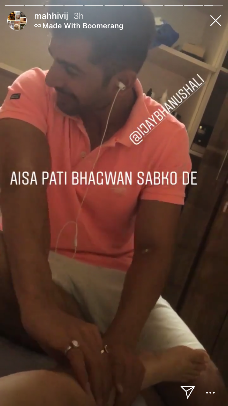 Coming back to Mahhi’s pregnancy, ever since the news came into the forefront, Jay can be seen fulfilling all the duties of a doting hubby. From taking her for a movie to keeping a constant check on his expecting wifey, Jay has been giving examples on how to take care of your preggy wifey. And now, he is giving another reason to Mahhi to rejoice. Well, Mahhi took to her Instagram story and shared a Boomerang video wherein Jay can be seen giving a relaxing foot and leg massage to her. Atop the story, Mahhi wrote, “Aisa Pati Bhagwan Sabko De @JayBhanushali.” Checkout the snapshot of the same here: