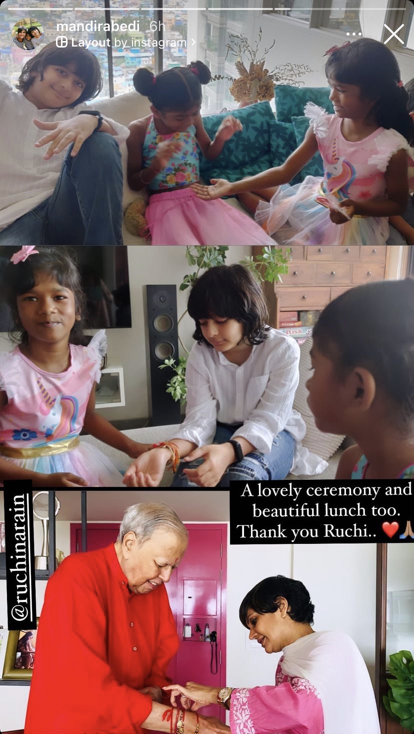 Celebrating festivals when your heart is in pain can be hard, and most of us must have dealt with it. Mandira Bedi is picking up the broken pieces of her heart after her husband, Raj Kaushal’s death for the sake of their kids, Vir Kaushal and Tara Bedi Kaushal. From celebrating Tara’s first birthday with her family to celebrating Raksha Bandhan, Mandira is holding herself and keeping her kids’ happiness as her priority.
