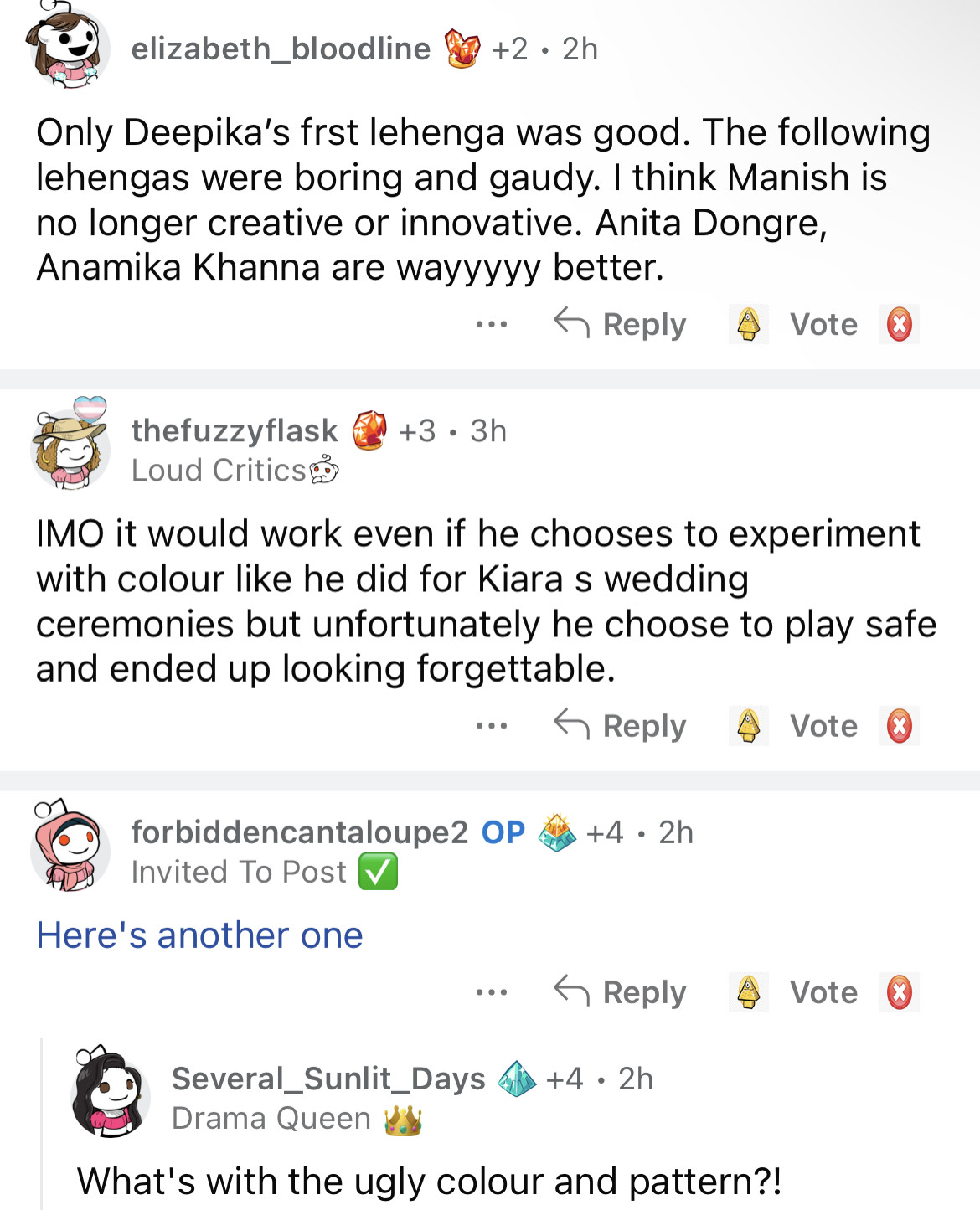 As soon as the post was shared on the internet, netizens were quick to react on the same. While one user penned, "Thats probably why he's Bollywood's favourite, coz they don't believe in taking risks too", another one commented, "Same to same". Meanwhile, a third user wrote, "Only Deepika’s first lehenga was good. The following lehengas were boring and gaudy. I think Manish is no longer creative or innovative. Anita Dongre, and Anamika Khanna are wayyyyy better." Check out the comments below: