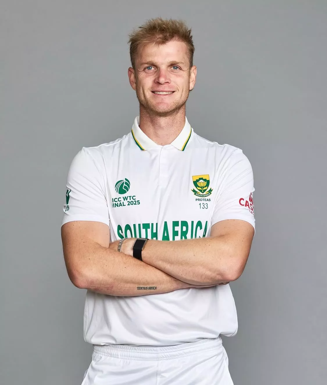 His Test debut in 2024 was particularly remarkable as he became the first South African to take four wickets and score a fifty on his debut, this resulted in him joining an elite group of just 25 cricketers who have all claimed a wicket with their very first ball in Test cricket. He also set the record for the highest score by a No. 9 batsman on Test debut with an unbeaten 81. Most recently, in 2025, he played a crucial role in helping MI Cape Town win the SA20 title.