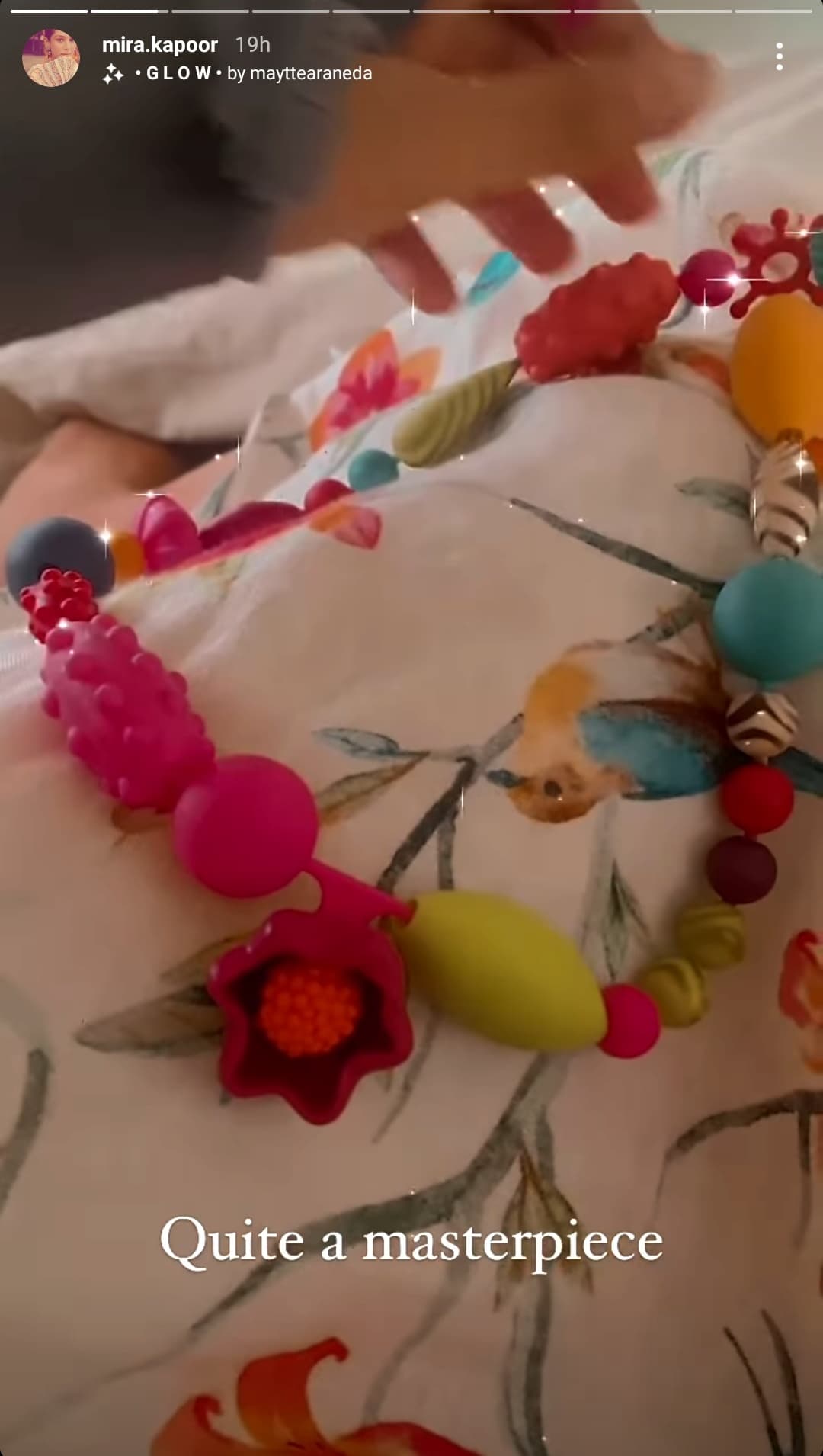 Despite being in the lockdown, Mira Rajput Kapoor's afternoon was way better than ours as she spent some fun quality time with her little one, Misha Kapoor. Giving a glimpse of how her afternoon looks like at home, Mira posted a short clip of how she has spent time making jewellery out of toy pieces with Misha. In the clip, Mira flaunted the ring and bracelet they have made and the other picture gave a glimpse of a 'masterpiece' necklace made by Misha for her. Mira captioned the clip as "afternoon in the girls club." Here are the screenshots of the same: