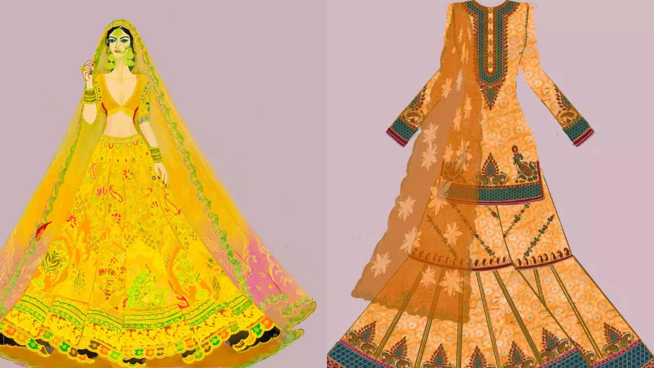 Heermandi is a period drama based on the pre-independence era, so the costume was designed based on the timeline. For the Miss World final night, Rimple and Harpreet Narula designed outfits in the hues of gold, yellow, mustard, green and orange as the lyrics revolved around "Phul rahi sarso, Sakal ban". Each piece was designed with intricate zardozi detailing, delicate Persian embroidery, and English motifs. All the 13 finalists were seen walking the ramp in their custom-made Heeramandi-inspired outfits, and they looked regal and straight out of a Bhansali movie.