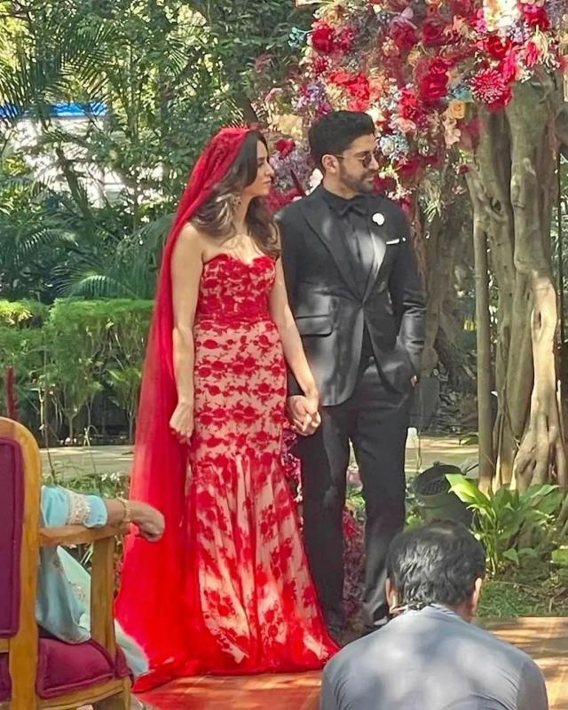Finally, after all the hoopla, Bollywood actor, Farhan Akhtar had exchanged the wedding vows with his longtime girlfriend, Shibani Dandekar, post his divorce from his first wife, Adhuna Bhabani in 2017. Shibani and Farhan had a Christian wedding in front of their close-knit family and friends at the actor's Khandala house, and it was everything beautiful. While the groom had decked up in a black tuxedo suit, the bride had dazzled in a red gown.