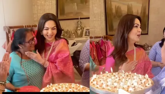 Nita Ambani turned a year older, much wiser, and prettier on November 1, 2024. To celebrate the special day, her staff members lit up several diyas on a thali and did her aarti with the same. All the members sang the Happy Birthday song in chorus and wished the diva all the light and positivity in her life. Nita Ambani glowed in happiness and couldn't stop smiling as her staff members made her feel extra special on her birthday.