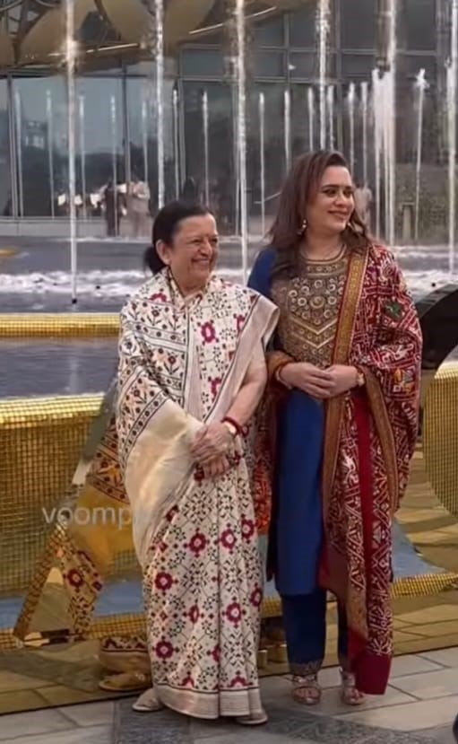 A few moments back, the paps spotted Nita Ambani's mother, Purnima Dalal arriving at the NMACC. She was seen dressed in a white-hued printed patola saree with broad gold borders. Purnima Dalal teamed her elegant saree with a plain blouse of the same colour. Moreover, a sleek bun and a classy wristwatch completed her look. She was accompanied by her daughter, Mamta Dalal, who looked extremely pretty at the event.