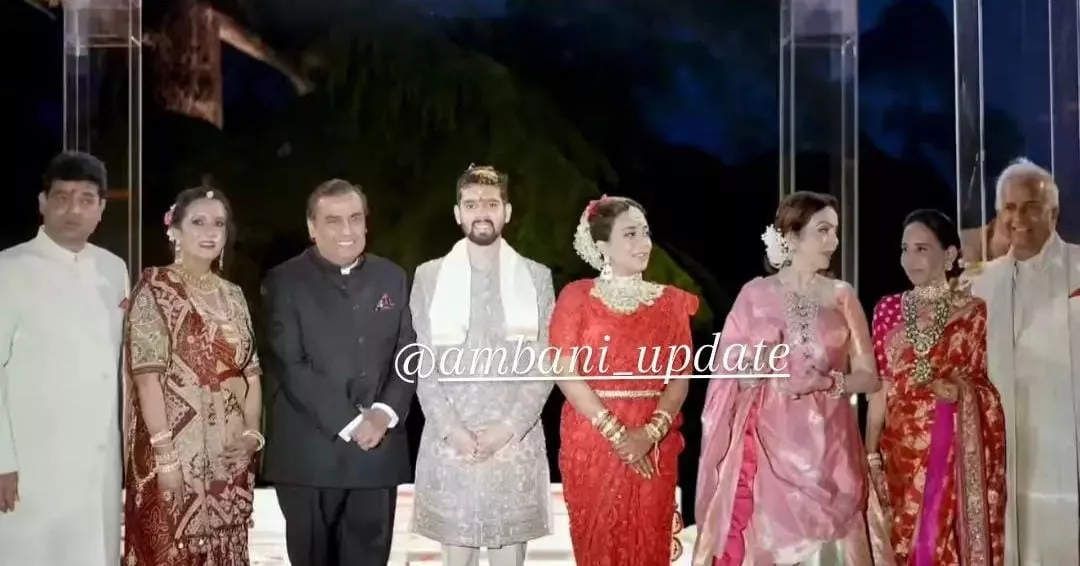 Now, a fan page of the Ambanis shared some recent photographs of Mukesh Ambani and his wife, Nita Ambani as they graced a wedding in London. In the pictures, Mukesh and Nita were seen blessing the newly wedded couple and posing with their family members. In one of the pictures, Mukesh and Nita were spotted joining their hands in front of the newly-wedded duo in order to say namaste, reportedly, the latter duo was also seen doing the same. Later, Nita was also seen conversing with the bride's mother in one of the pictures, while the rest of the people in the frame smiled happily.