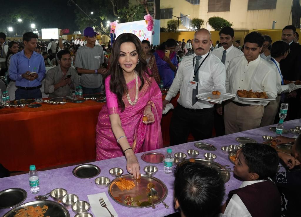 Nita Mukesh Ambani had a very special celebration on her 60th birthday with over 3000 underprivileged school-going children in Mumbai. She provided entertainment and gifts to the kids and performed Anna Seva, as she personally served them food on silver plates. It was indeed a thoughtful way of marking another year filled with happiness, kindness and love, by Nita. She also received warm wishes and immense love from the kids, who were impressed by her gestures.