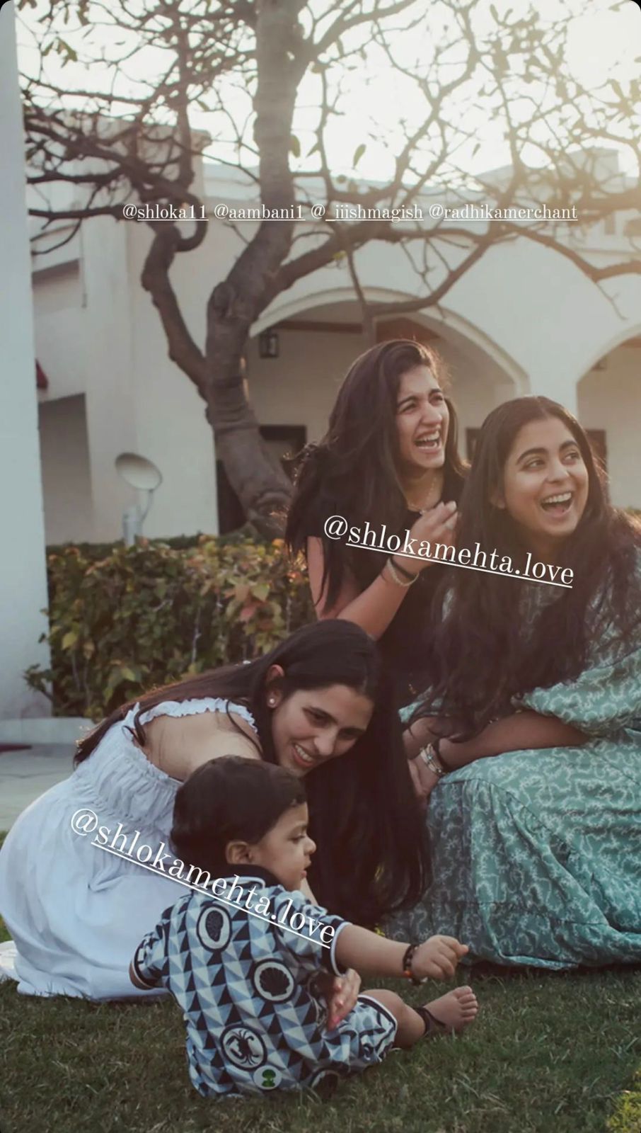 While scrolling down our IG feed, we stumbled upon a picture of Akash Ambani's son, Prithvi, which was shared by one of his fan pages. In the picture, Prithvi can be seen enjoying his quality time with his mommy, Shloka Mehta, bua, Isha Ambani Piramal, and soon-to-be chachi, Radhika Merchant. Prithvi's playdate with the Ambani ladies looked like fun, and the smiles on everybody's faces speak volumes about the beauty of the million-dollar picture!
