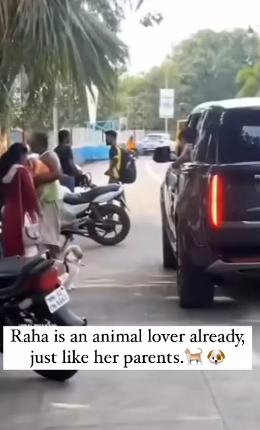 There is no denying that Alia Bhatt and Ranbir Kapoor are animal lovers. They even announced their pregnancy with a picture of a family of lions. The duo also revealed that Masai Mara is close to their hearts, and it was there that Ranbir proposed to Alia in the jungle. Recently, we witnessed their baby girl, Raha's love for animals during her recent spotting. In a video doing rounds on the internet, Raha was seen peeping out of her swanky car and looking in awe at a dog at a traffic signal. The little one's cutesy moments with the dog melted many hearts.