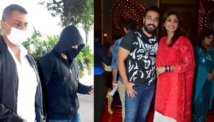 On November 25, 2021, Raj Kundra arrived at the airport along with his wife, Shilpa Shetty Kundra. However, to avoid the media glare, he hid his face with a black hoodie and mask. To keep his look low profile, the businessman wore a hoodie along with blue jeans. On the other hand, Shilpa donned a striped blazer, blue jeans and running shoes. She rounded off her look with gold chains, statement sunglasses and a burgundy arm candy to complete her stylish airport look.