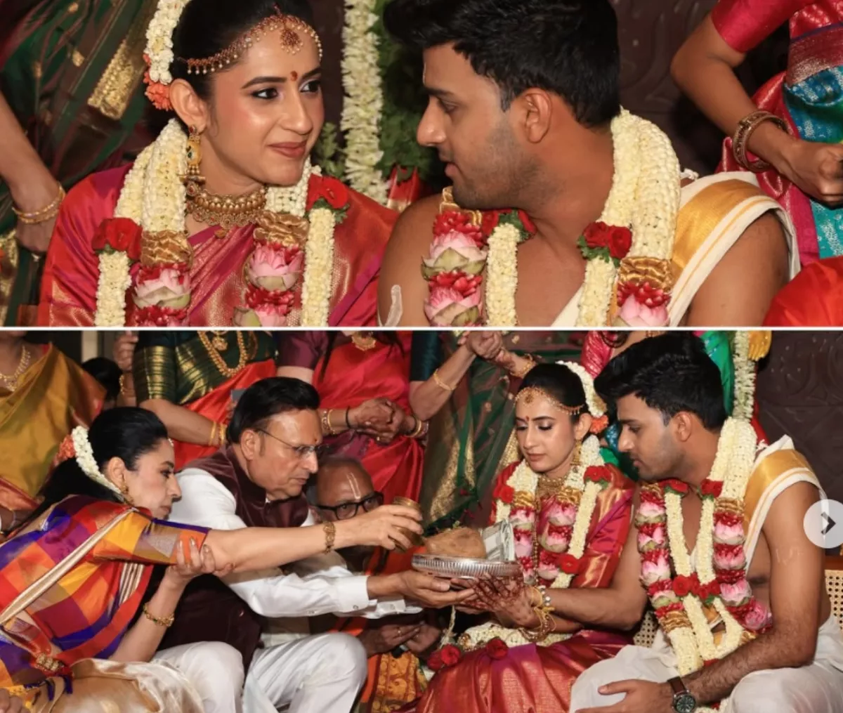 The images showed Disha's South Indian celebration as she got married to Sudarshan M.J., who is a legal professional. She was dressed up in a gorgeous silk saree with floral garlands. The couple was seen performing the rituals of marriage. However, one notable moment of the celebration was how Rajat Sharma performed his daughter's kanyadaan.